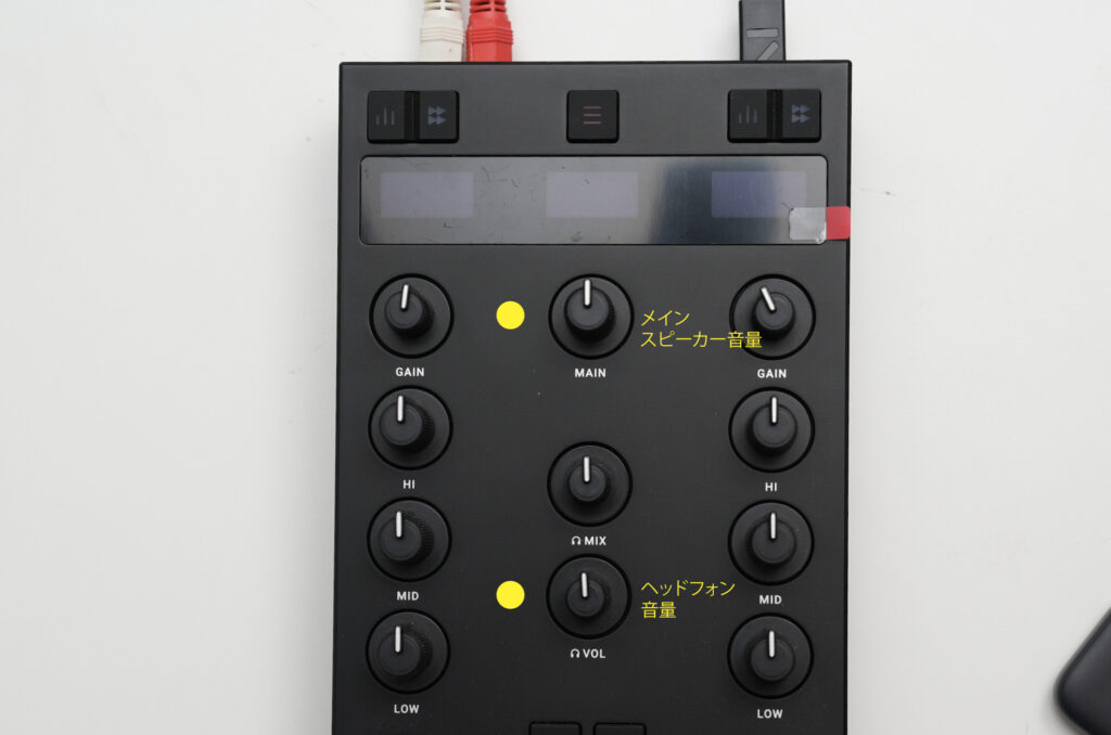 オーディオインターフェイスとしてipad側のdjayが認識しているためこの黄色の丸のつまみがちゃんと対応しているんです。