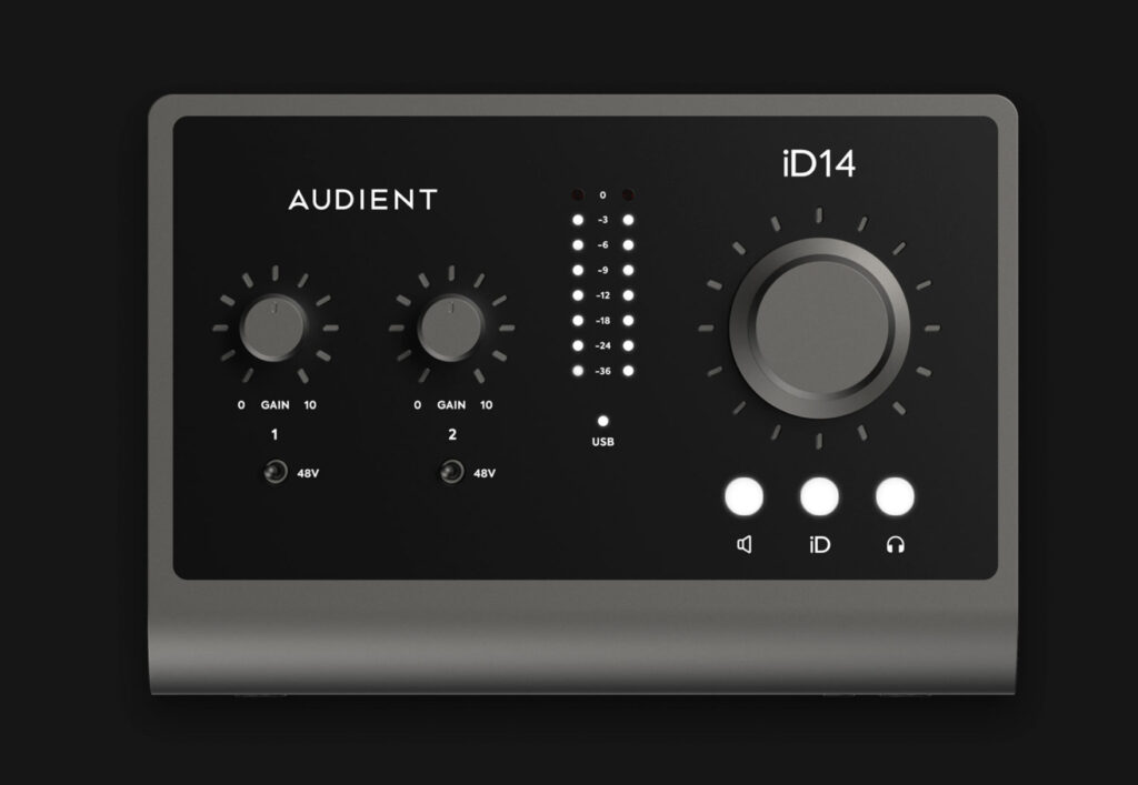 例えば AUDIENTのiD14 これをパソコンに繋げればこれからヘッドフォンモニターと高音質出力が可能になり、reloop buddyをただのコントローラーとして音質と切り離して使用できます。(この機種はipad非対応)