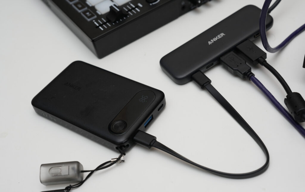更にこのように外部電源をバッテリーで供給することでかなりの時間DJすることができます。